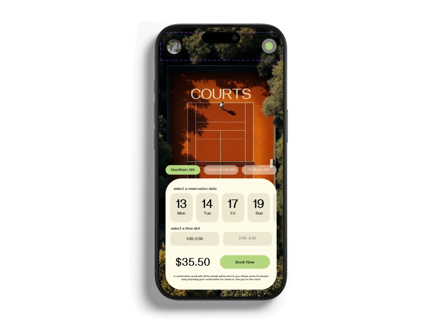 Courts is a mobile reservation app designed for a members-only tennis club. The project included full brand development and product design — from identity system to interface architecture.