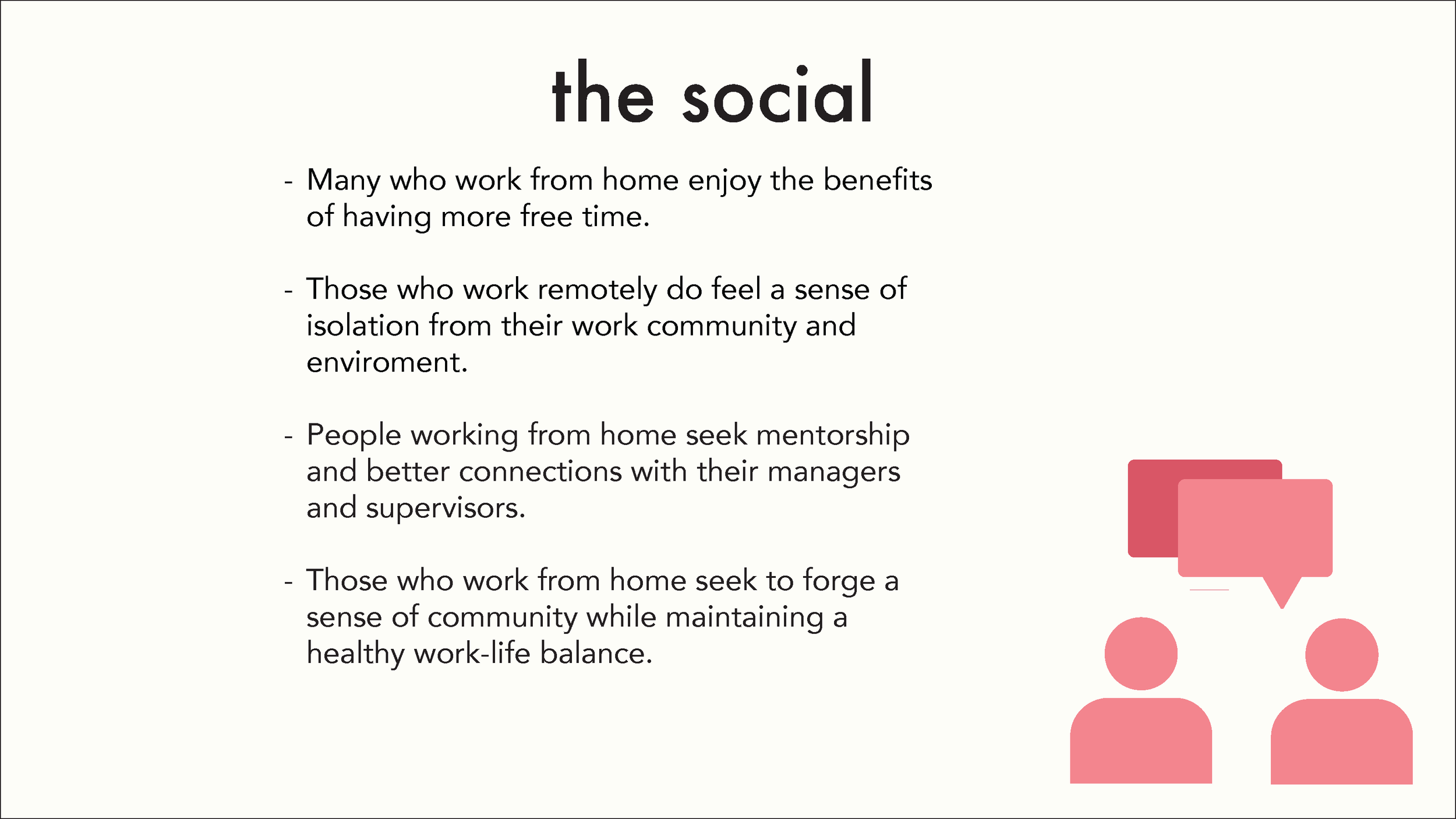 I interviewed a series of people in my community who worked from home, and focused on getting their opinion on communication, productivity, and generational differences.